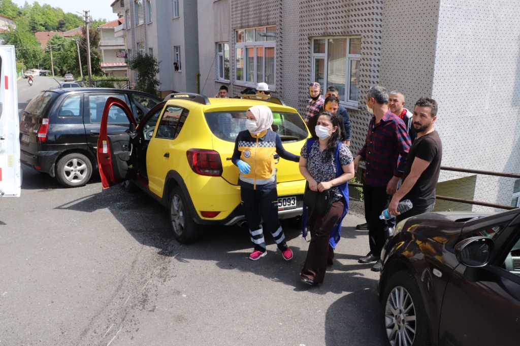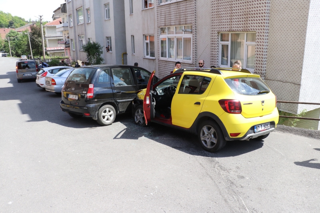 Kaza saat 14.30 sularında Bağlık Mahallesi Eser Sokak üzerinde meydana geldi. İddiaya göre Atatürk Ortaokulu yan yolundan çarşı istikametine giden Mehmet Uzun idaresinde ki 67 T 5093 plakalı ticari taksiye ara yoldan çıktığı iddia edilen ve Mesut Atasoy idaresinde ki 67 UF 451 plakalı otomobil çarptı. Çarpmanın etkisi ile baygınlık geçiren ticari taksi sürücüsü Mehmet Uzun’un kullandığı araç yaklaşık 150 metre gittikten sonra park halinde ki otomobile çarparak durabildi. Kazada ticari takside bulunan Deniz (35) ve Soner (37) Demirer çifti için sağlık ekiplerine haber verildi. Olay yerine gelen sağlık ekipleri yaralılara yaptıkları ilk müdahalenin ardından özel Echomar hastanesine kaldırılarak tedavi altına alındı. Olayı gören vatandaşlar hususi otomobilin ticari taksiye çarptığını ve ticari taksi sürücünün daha sonra park halinde ki araca çarparak durabildiğini söyledi. Kaza ile ilgili soruşturma başlatıldı.