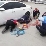 Zonguldak’ın Alaplı ilçesinde Belediye Oto Parkında aracın altına sıkışan köpeği itfaiye ekiplerinin yardımıyla kurtarıldı.