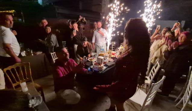 AVŞAR sahnede sahne alan Melek Mosso konserinde güzel enstantaneler kameraya yansıdı. Melek Mosso Konserine uzun süredir birliktelik yaşadığı Sinem Çetinkaya ile gelen Cihan Turan, yakın arkadaşlarının da eşlik ettiği gecede sevgilisi Sinem Çetinkaya’ya evlilik teklifinde bulundu. Melek Mosso’nun sahneye çıkmasının hemen ardından konfeti ve özel hazırlana pastanın masaya gelmesi ile ayağa kalkan Cihan Turan daha sonra diz çökerek Sinem Çetinkaya’ya evlenme teklifinde bulundu. Sinem Çetinkaya’nın ‘Benimle Evlenir misin?’ sorusuna ‘Evet’ cevabı vermesi ile çift büyük mutluluk yaşadı. Yaşanan bu güzel olayın ardından genç çift arkadaşlarının tebriklerini kabul etti. Bizlerde genç çifte mutluluklar diliyoruz.