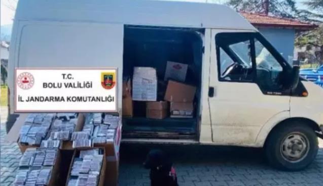 Bolu İl Jandarma Komutanlığı ekipleri tarafından yol güzergahları üzerinde yapılan kontrollerde bir minibüs ile yolcu otobüsü kontrol noktasında durduruldu. Ekipler tarafından iki araçta yapılan aramalarda 34 bin 800 adet içi tütün dolu makaron, 20 adet elektronik sigara, 21 bin 600 adet elektronik sigara likiti, 100 paket kaçak sigara ve 4 kilogram nargile tütünü ele geçirildi. Olayla ilgili 2 şüpheli hakkında yasal işlem başlatıldı.