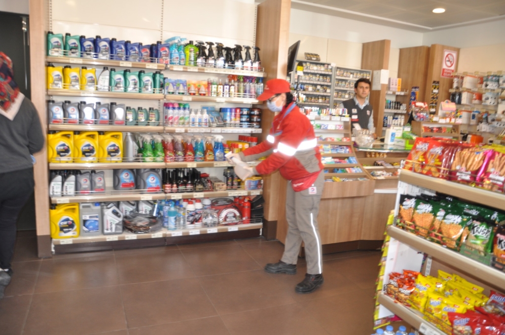 Türkiye genelinde her alanda alınan Korona Virüs ile ilgili olarak TOTAL Çilek Akaryakıt istasyonu da önlemini alıyor. Özel getirtilen Dezenfekte ilaçları ile istasyonda pompalar, market içi, lavabolar ve tuvaletler ilaçlanıyor. Gelen müşterilere ise aracından iner inmez Akaryakıt çalışanlarınca el temizlik dezenfektanı veriliyor. Uygulamayı gören sürücüler bu durumdan oldukça memnun olduklarını ve gönül rahatlığı ile Çilek Akaryakıt istasyonundan alış verişlerini yaptıklarını ifade ettiler. Akaryakıt çalışanı Zeynep Gürbüz’de “İstasyonumuz her yarım saatte bir ilaçlanıyor. Müşteri sağlığı bizim için önemli” dedi.