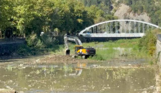 Bartın’ın Ulus ilçe merkezinde, çayda biriken çakıl ve toprak yığınları iş makineleriyle temizleniyor.