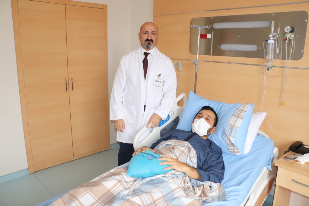 Gerçekleştirilen ameliyat ile ilgili olarak bilgi veren Doçent Doktor Ali Kemal Gür “Nefes darlığı ve göğüs ağrısı şikâyeti ile geldi. Hastaya yaptığımız eko sonucunda kalpten çıkan güçlü ve sivri büyük bir damarımız var, onda yırtık tespit ettik. Bunu tespit ettiğimiz an hastayı direkt olarak ameliyata almamız gerekiyor. Çünkü; bu hastalığının ölüm riski her saat başı %4 olarak artıyor yüzden hastamızı görür görmez biz hazırlıklarını yaptık ve en kısa zamanda ameliyata aldık hastayı. Kalbi açtığımızda göğüs kafesini açtığımızda çok ciddi bir genişleme ile karşılaştık. Açıkçası 15 senelik meslek hayatımda ilk defa gördüğüm bir görüntüydü, yaklaşık 13 14 santimlik bir genişleme söz konusuydu. Normalde bu damar 2 3 santimdir fakat harun beyin ki yaklaşık 13 14 santim civarında genişlemesi olmuştur. O yüzden biz hastayı acilen ameliyat aldık ve yapay bir damar takarak hastanın hayatını devam ettirmeye çalıştık. Çok şükür bir sıkıntımız olmadı. Ameliyatımız çok uzun sürecek gibiydi fakat çok şükür kısa sürdü. 3 saatlik bir zaman zarfında hastayı yoğun bakıma aldık. Sıkıntı olmayacak bundan sonrası için normal hayatına dönecek 1 2 aylık iyileşme sürecinin ardından normal hayatına dönebilecek. Hastamızı zaten bugün yarın taburcu etmeyi düşünüyoruz herhangi bir sıkıntımız yok. Hastamızı ameliyata alırken yakınlarını bilgilendirdik. Açıkçası bu ameliyatın riski %40 ile %50 civarında bir ölüm riski vardır. Ameliyat sonrası böbrek yetmezliği karaciğer yetmezliği hariç sadece ölüm riski %50 civarındadır. O yüzden çok şükür bir sıkıntı olamadan atlattık” dedi.