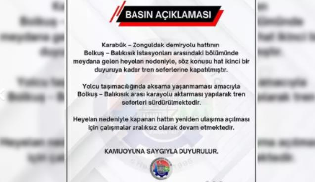 Karabük-Zonguldak demir yolu hattının Bolkuş-Balıkısık istasyonları arasındaki kısımda sabah saatlerinde heyelan meydana geldi. Heyelan nedeniyle demir yolu hattı seferlere kapatıldı. Karabük Valiliği’nden yapılan açıklamada şöyle denildi: