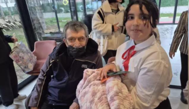 Mehmet Akif Ersoy İlkokulu 3-B sınıfı öğrencilerinin aileleri huzurevinde kalan yaşlılar için battaniye ördü. Öğrenciler de okullarda battaniyeleri hediye paketleri ile süsleyerek Milli Eğitim Müdürü Fatih Öncü ve öğretmenleri ile birlikte İzzet Baysal Vakıf Huzur Evi'ne gitti. Türkiye Yüzyılı Maarif Modelinin 'Erdem-Değer-Eylem' çerçevesinde düzenlenen etkinlikte öğrenciler huzurevinde kalan vatandaşların elini öperek battaniyeleri hediye etti. Öğrencilerle bir araya gelen huzur evi sakinleri mutluluk yaşadı.