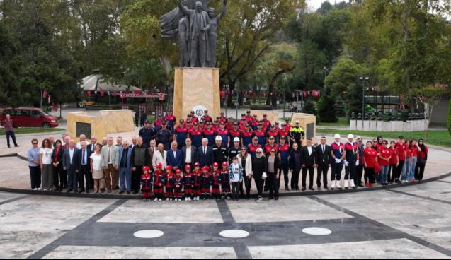 Atatürk Anıtı’nda düzenlenen törende İtfaiye Müdürü Muhammet Ali Ateş anıta çelenk sundu, saygı duruşunda bulunularak İstiklal Marşı okundu. Törene Belediye Başkanı vekili Çetin Yiğit, belediye başkan yardımcıları, belediye meclis üyeleri, siyasi parti temsilcileri, STK temsilcileri daire müdürleri, itfaiye mensupları, gönüllü itfaiyeciler, Erdemir İtfaiye yetkilileri ve diğer kurumlardan gelen temsilciler katıldı. Belediye kreşinin minikleri de itfaiyeci kıyafetleriyle törene renk kattılar.