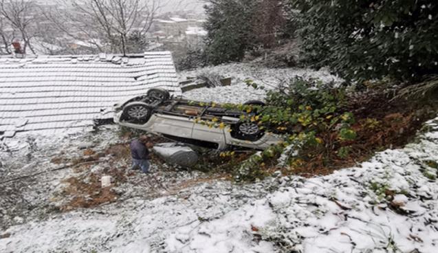 Zonguldak'ın yüksek kesimlerinde etkili olan kar yağışı hayatı olumsuz etkiledi. Kar nedeniyle maddi hasarlı kazalar meydana geldi, araçlar yollarda kaldı.