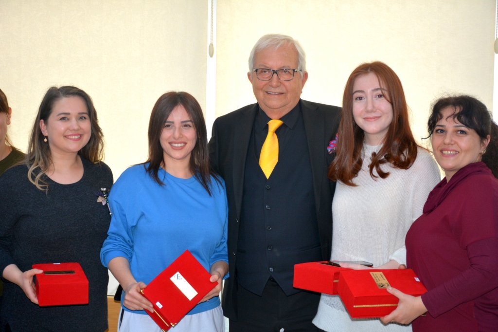 Başkan Posbıyık, konuşması ardından kadın çalışanları kutlayarak hediyelerini tek tek verdi. İlk hediyeleri eşi Neriman Posbıyık'a ve kadın Belediye Meclis üyelerine takdim etti.
