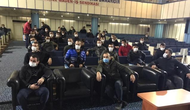 Toplantı ile ilgili açıklamalarda bulunan GMİS Eğitim ve Teşkilatlandırma Sekreteri Tayfun Demir, “Pandemiden kaynaklanan sıkıntılar nedeniyle ve cumhurbaşkanımızın yapmış olduğu açıklamadan dolayı arkadaşlarımızın da bölgelerde herhangi bir esneme olacağını düşünerek sendika binamızda ziyarete gelmişlerdir. Hafta sonu uygulanacak sokağa çıkma kısıtlaması Ve cumhurbaşkanımızın açıkladığı genelge doğrultusunda işçi arkadaşlarımız mesailerde esneme olacağını düşünmüşler. Konuyla ilgili işçi arkadaşlara bilgilendirmeleri yaptım. Önümüzdeki hafta içinde de genel başkanımız Hakan Yeşil işçiler ile görüşerek bir mütakabat sağlanacaktır. Cumhurbaşkanımızın yayınladığı genelge işçilerin yoğun olarak çalıştığı ve üç var diye çalıştığı yerler için geçerlidir. Merkez Servisleri Maden Makinaları Fabrikası ve harici servislerde 470 işçi çalışmaktadır ve bu genelge işçilerin dışında kalmaktadır” diye konuştu.
