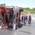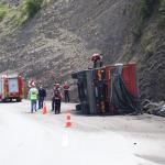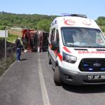 VİRAJI ALAMADI,KAMYON DEVRİLDİ...
