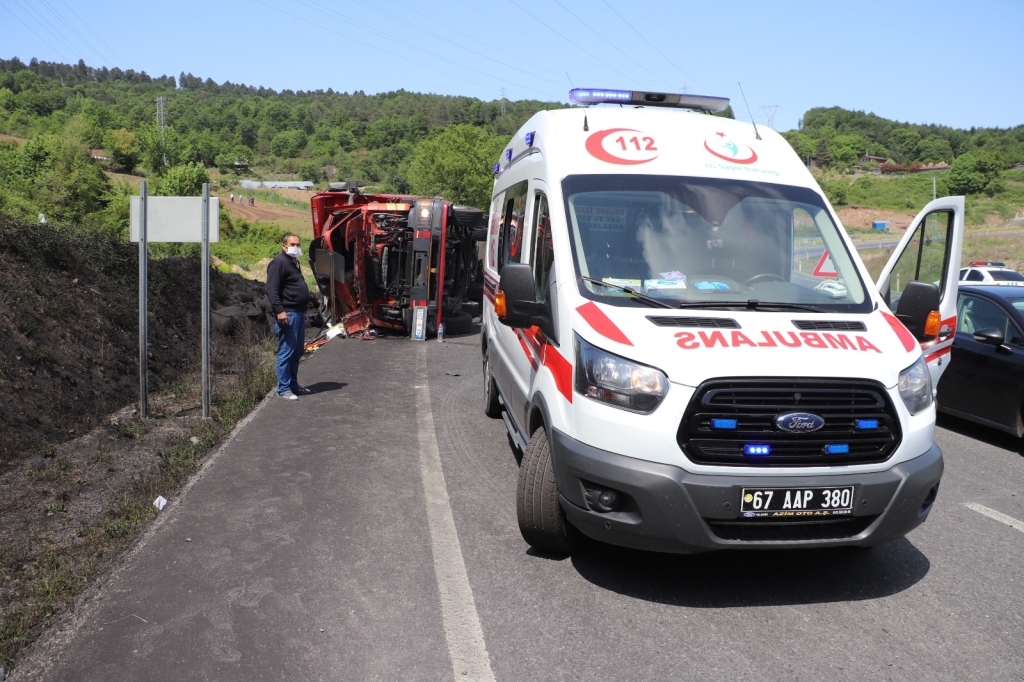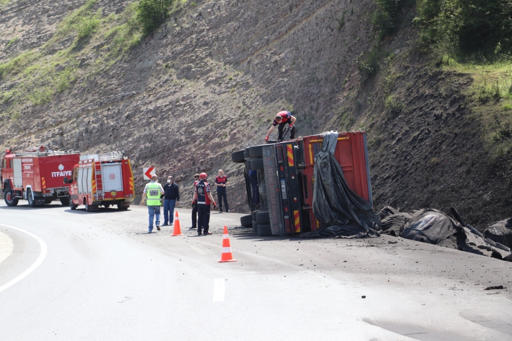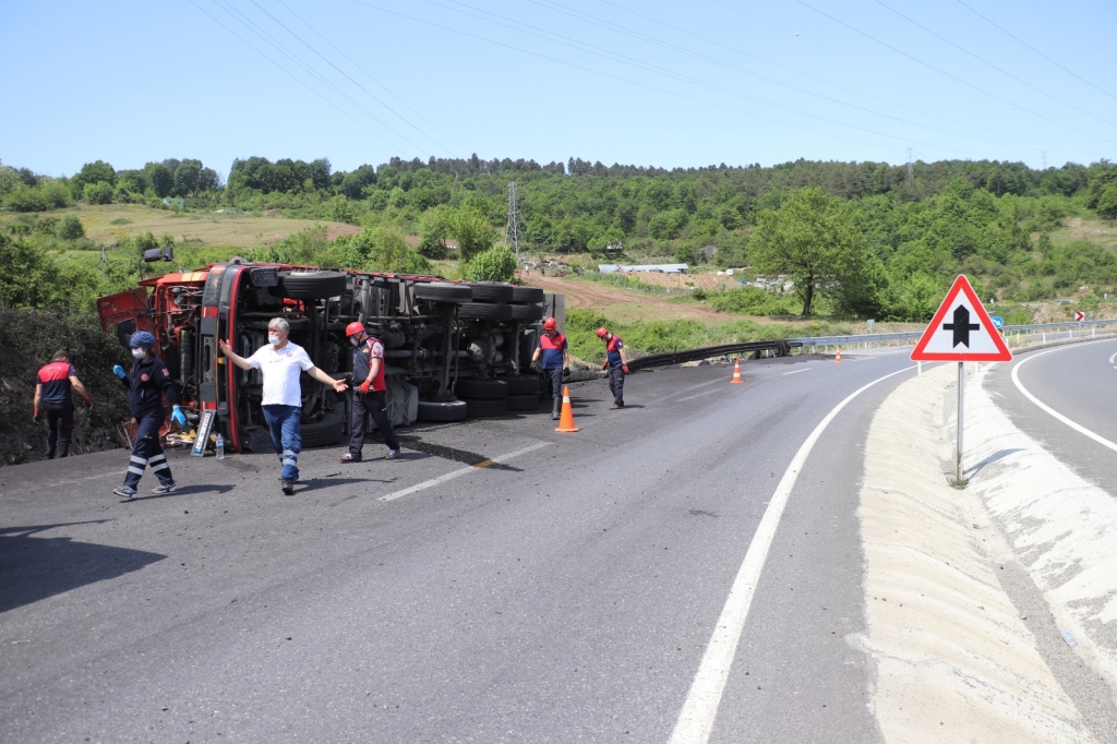 Kaza saat 14.00 sularında Soğanlı pampaları mevkiinde meydana geldi. Alınan bilgilere göre Zonguldak’tan aldığı döküm kumunu İstanbul’a götürmek için yola çıkan Murat Yavuz’un kullandığı 42 U 2200 plakalı kamyon, Soğanlı rampalarından iniş yaptığı sırada sürücüsünün direksiyon hakimiyetini kaybetmesi sonucu devrildi. Kazada yaralanan sürücü Murat Yavuz için diğer sürücüler tarafından sağlık ekiplerine haber verildi. İtfaiye ekiplerinin de geldiği olay yerinde kamyonun kupasından çıkarılan sürücü ambulansa alındı. İlk müdahalesi olay yerinde yapılan sürücü daha sonra Devlet hastanesine kaldırıldı. Sürücünün tedavisinin devam ettiği öğrenildi. İtfaiye ve Trafik ekipleri yolda güvenlik önlemi alırken, trafik tek şeritten verildi. Kaza ile ilgili soruşturma başlatıldı.