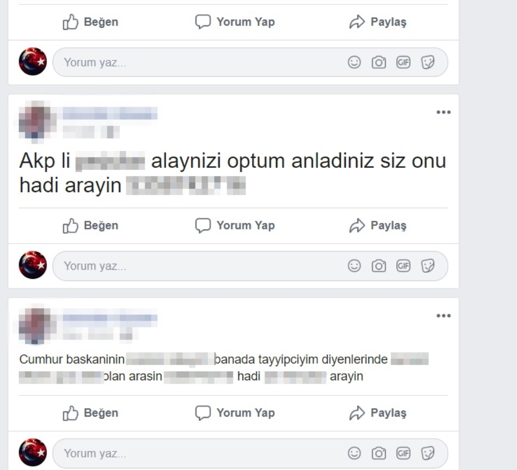 Ereğli’de yaşayan ve Cumhurbaşkanı Recep Tayyip Erdoğan ile birlikte Ak Partililere ağıza alınmayacak hakaretler yazdığı tespit edilen İ.U. (63) polis tarafından gözaltına alındı. İ.U. nun emniyetteki ifadesinin tamamlanmasının ardından adliyeye sevk edildi. İ.U. nün savcılık makamınca serbest bırakıldığı öğrenildi.