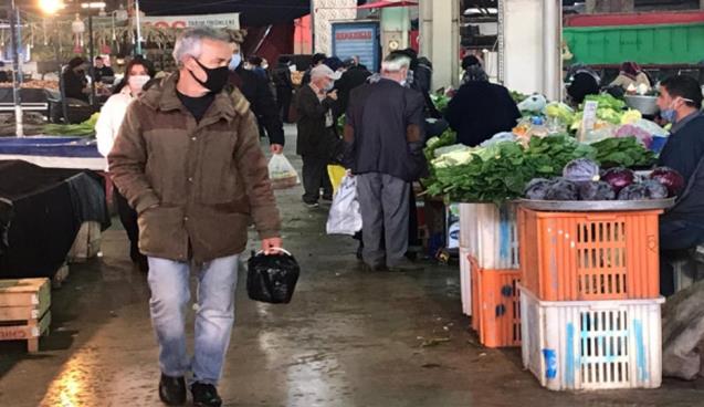 Cumartesi, pazar günü 56 saatlik uygulanacak olan sokağa çıkma kısıtlaması öncesi halk pazara ve marketlere akın etti.