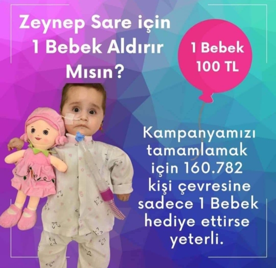 Düzce’nin Beyciler Mahallesi’nde yaşayan Semih ve Gizem Baykul çiftinin kızları Zeynep Sare’ye 2,5 aylıkken SMA Tip-1 teşhisi kondu. Durumu günden güne ağırlaşan ve makineye bağlı olarak yaşamını sürdüren Zeynep Sare’nin ailesi, ABD’de uygulanan gen tedavisi için gerekli olan 2 milyon doları toplamaya çalışıyor. Gönüllüler tarafından örülen bebek ve anahtarlıklar satılıp, kermesler düzenlenerek para toplanmaya çalışılıyor.