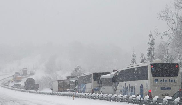 Kış lastiği olmayan araçlara geçiş izni verilmeyen yol üzerinde çok sayıda araç yolda kaldı.