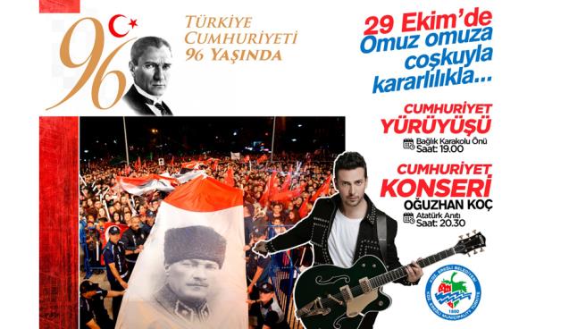 100 metre uzunluğunda Bayrak zincirinin oluşturulacağı yürüyüşün hemen ardından Atatürk Anıtı önünde genç sanatçı Oğuzhan Koç konser verecek.