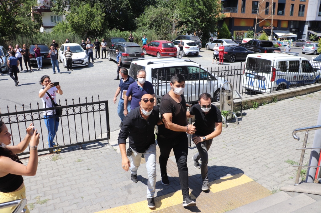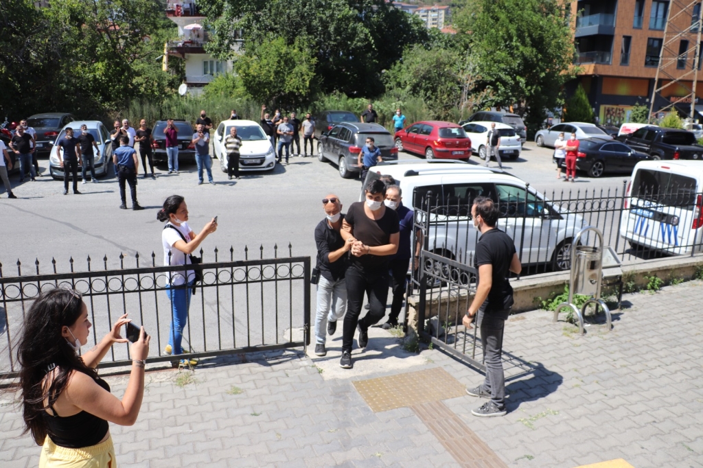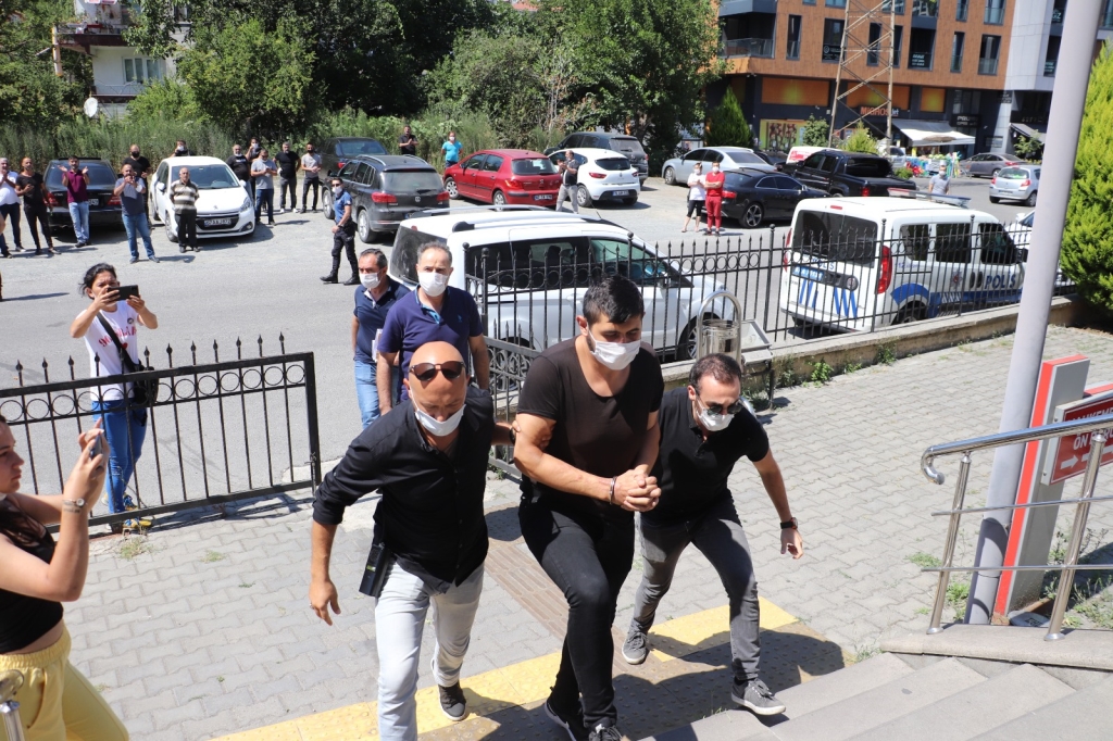 Zonguldak'ın Ereğli ilçesinde babası ve amcasını öldüren kişiyi sahilde vuran zanlı Devrim K, adliyeye çıkartıldı.