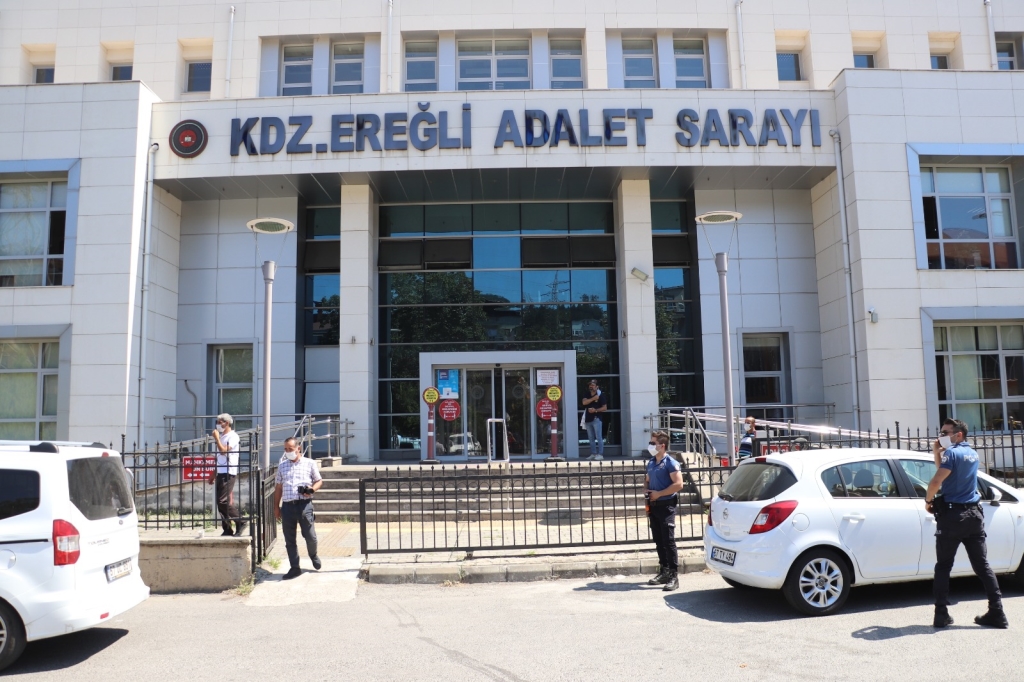 Ereğli’ de dün 16.00 sularında babası ve amcasını öldüren Ersin Aydoğdu’yu vuran Devrim K. adliyeye getirildi. Yakınları tarafından alkışlarla adliyeye giren Devrim K. ‘Neden yaptınız’ sorusunu yanıtsız bıraktı. Polis adliye girişi ve çevresinde geniş güvenlik önlemi aldı.