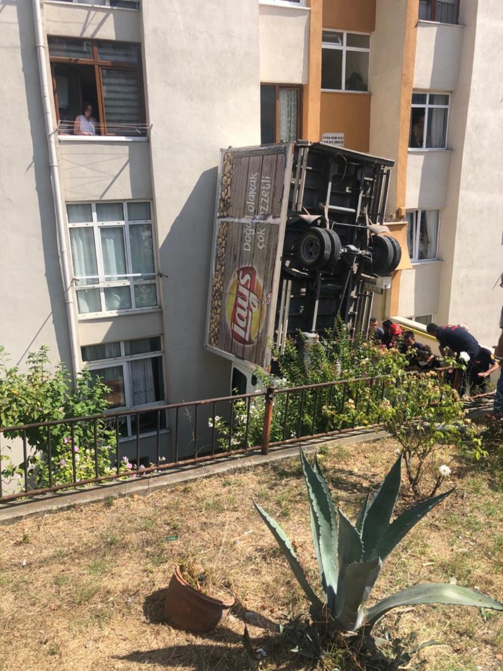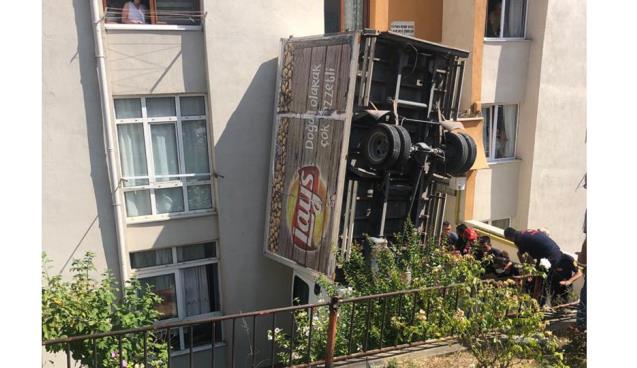 Alınan bilgiye göre kaza, saat 10:30 sıralarında merkez Bahçelievler Mahallesi Balkaya Caddesi’nde meydana geldi. İddiaya göre, sürücüsünün kontrolünden çıkan tşcari araç bir binanın boşluğuna uçtu.