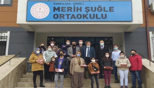 Ereğli Eğitim Fakültesi İlköğretim Matematik Öğretmenliği 4. sınıf öğrencileri, Topluma Hizmet Uygulamaları dersi kapsamında,Doç. Dr. Timur KOPARAN danışmanlığında yürüttükleri proje çerçevesindesalgın öncesi düzenledikleri kermes ve hayırseverlerin katkıları ile temin ettikleri 21 tableti uzaktan eğitime katılamayan ihtiyaç sahibi öğrencilere teslim ettiler.
