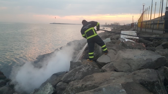 Olay Bozahane mevdirek mevkiinde meydana geldi. Alınan bilgilere göre mendirek alanında yükselen aleveri gören vatandaşlar barakaların yandığını zannederek itfaiye ekiplerine haber verdi. Olay yerine gelen itfaiye ekipleri yangının mendirek alanında ki kayalıklarda çıktığını belirledi. Bakır kabloların dış koruma plastiklerinin yandığı belirlenirken, yangın yapılan müdahale ile söndürüldü. Kablo koruma plastiklerinin yakıldığı olayın kimin yaptığı bilinmezken, yangını çıkaran kişi ya da kişilerin tespiti için çalışma başlatıldığı öğrenildi. Ekipler soğutma çalışmasının ardından olay yerinden ayrıldı.
