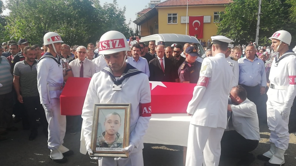 Kırklareli’de, serinlemek için girdiği denizde akıntıya kapılarak yaşamını yitiren Zonguldaklı Piyade Er Yasin Kumuz son yolculuğuna uğurlandı.