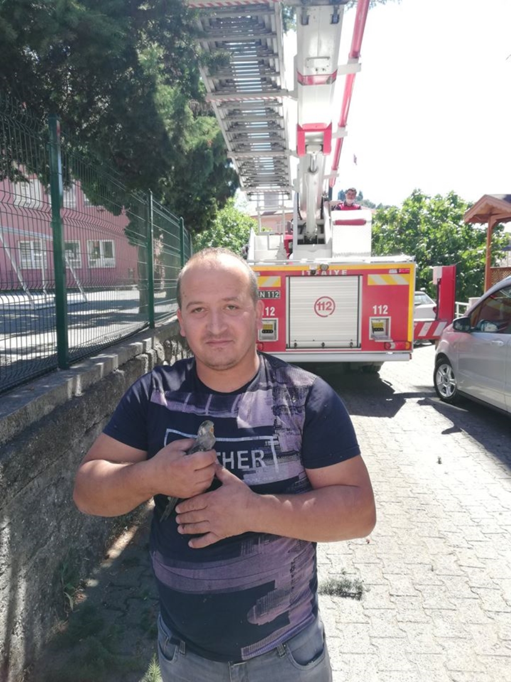 Emin Arukan, kendisini kurtaran İtfaiye müdürlüğü ekiplerine teşekkür ettikten sonra kuşu ile birlikte evin yolunu tuttu.