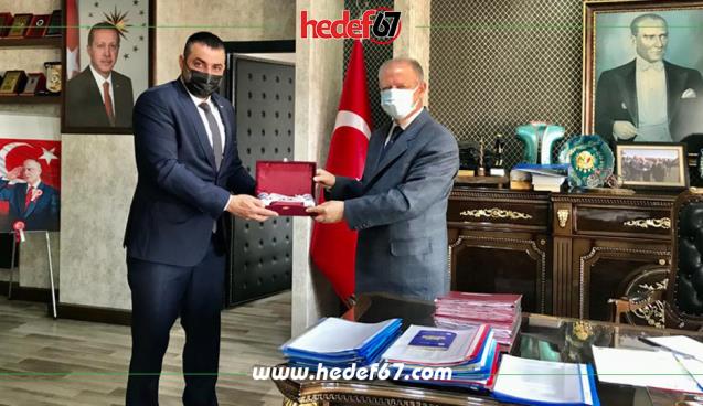 Güncel konular üzerinde görüş alış verişinde bulunulan ziyarette Şube Başkanı Yakup Yılmaz, Kaymakam İsmail Çorumluoğlu’na günün anısına kahve fincan takımı hediye etti.