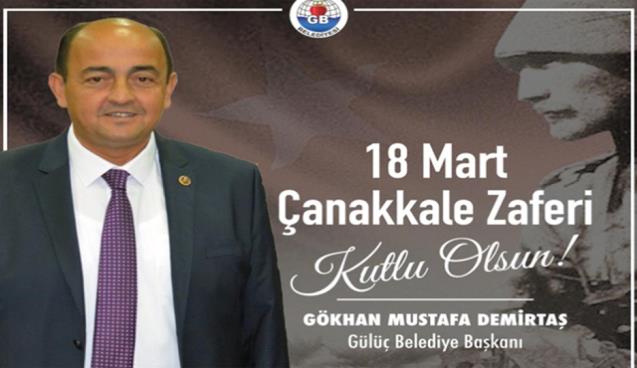 Gülüç Belediye Başkanı Gökhan Mustafa Demirtaş , 18 Mart Şehitleri Anma Günü ve Çanakkale Zaferi'nin 106'ncı yıl dönümü dolayısıyla mesaj yayımladı.