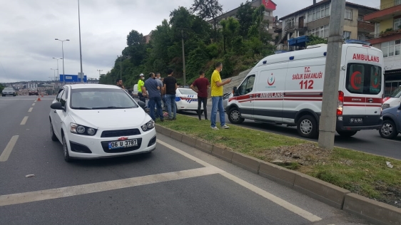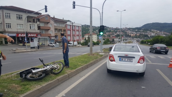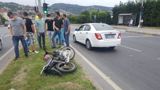 Kaza sabah saatlerinde Elmatepe Mahallesi ışıklarında meydana geldi. Alınan bilgilere göre kırmızı ışıkta duran H.K. nın kullandığı 06 U 3787 plakalı otomobile M.T. nın kullandığı plakasız motosiklet arkadan çarptı. Kazada yaralanan motosiklet sürücüsü M.T. olay yerinde sağlık ekiplerinin yaptığı ilk müdahalenin ardından devlet hastanesine kaldırıldı. Sürücü M.T. nin ayak ve el bileğinde kırık olduğu öğrenildi. Plakasız ve ruhsatsız olduğu öğrenilen motosiklet kaza yerinden çekici vasıtası ile kaldırılırken, sürücü M.T. Ye 3 bin lira ceza kesildi. Diğer sürücü H.K. ise ifadesi alınmak üzere polis merkezine götürüldü. Kaza ile ilgili soruşturma başlatıldı.