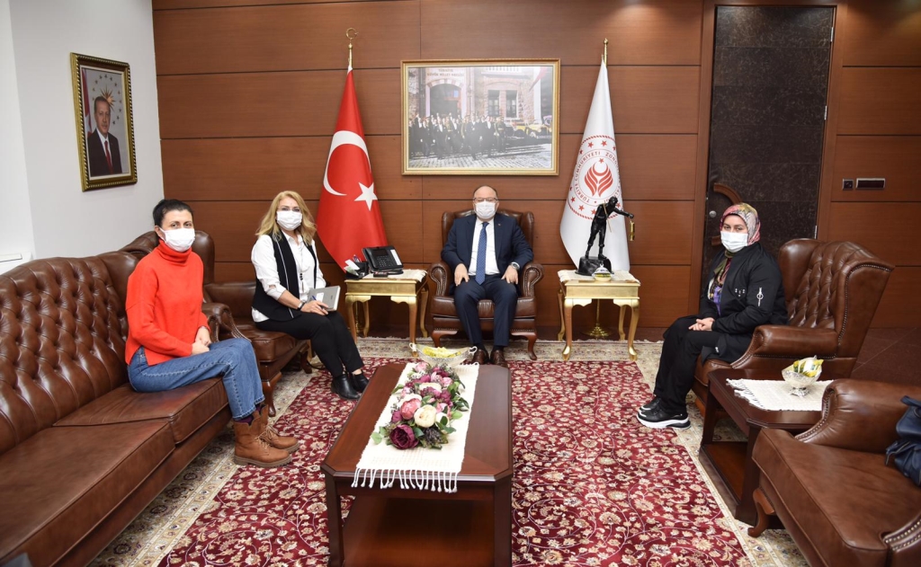 Zonguldak’ın Ereğli ilçesinin ilk kadın kooperatifi olan ‘Elpek Dokuyan Eller Kadın Girişimi Üretim ve İşletme Kooperatifi’ başkanı Nigar Duman ve kooperatif üyeleri Müjgan Özdemir ve Nurcan Semiz Vali Mustafa Tutulmaz’ı makamında ziyaret ederek kooperatif hakkında bilgiler verdi.