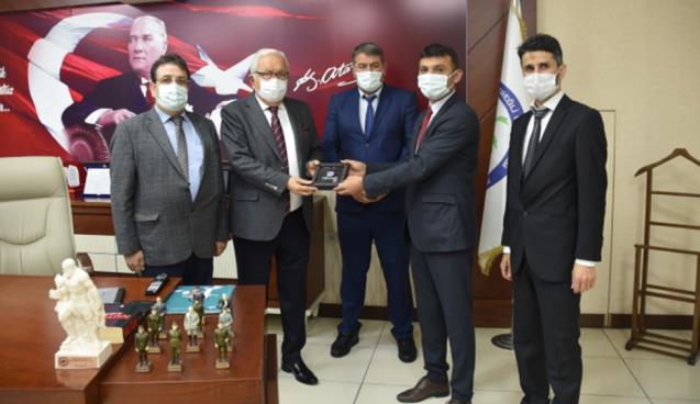 Turhan, ziyaretin anısına Başkan Posbıyık’ı kooperatif armasını hediye etti.