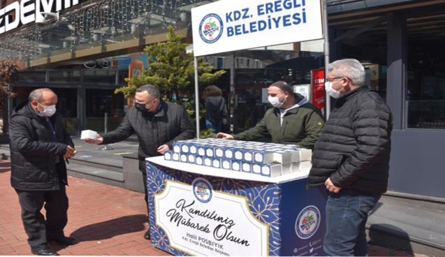 Ereğli Belediyesi Özel Kalem Müdürlüğü ve Kültür Sosyal İşler Müdürlüğü ekipleri, Berat Kandili öncesinde 5 bin adet kandil simidi dağıttı.