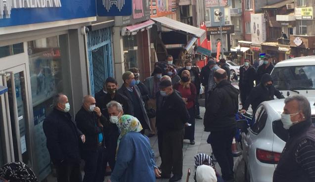 Ereğli'de banka önlerinde uzun kuyruklar oluştu...
