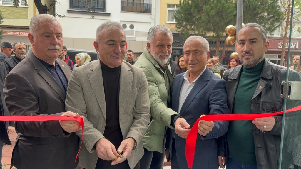 Murat Sesli , Rahman Demirtürk ve iş insanları ile birlikte kurdele kesiminin ardından mağaza ziyareti ve hatıra fotoğrafı çekimi yapıldı.