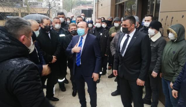 Erdal Sendika şube binası önünde Şube Başkanı Yakup Yılmaz, şube yönetimi ve kalabalık işçi tarafından sloganlarla karşılandı.