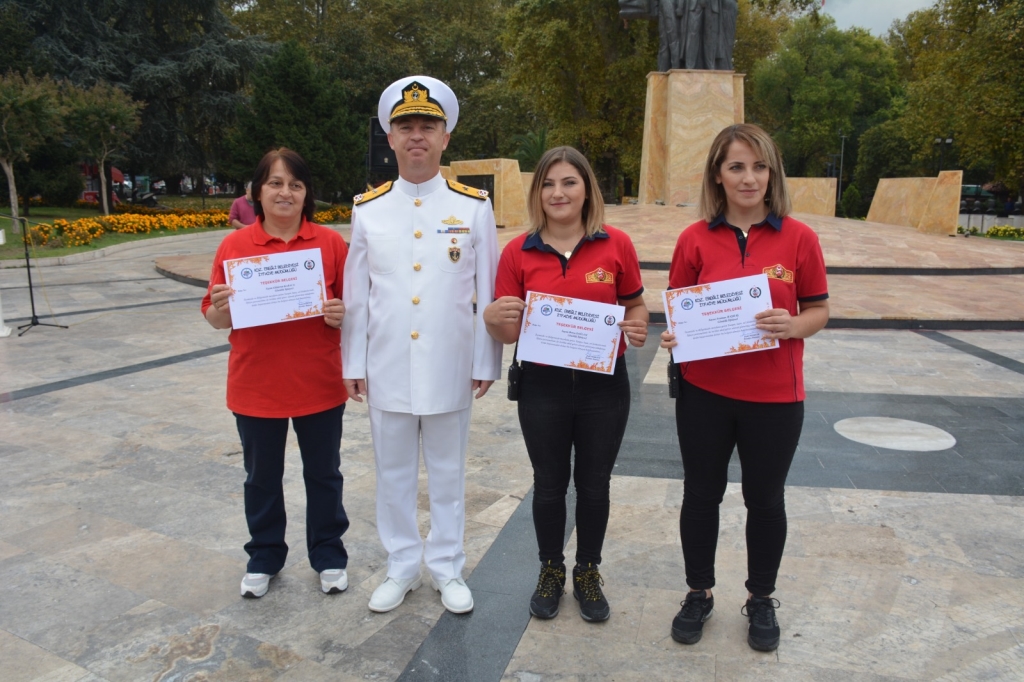 Tören çerçevesinde, gönüllü itfaiyeci olarak itfaiye ekipleriyle görev yapan Gönüllü İtfaiyecilere sertifikaları Kdz Ereğli Kaymakamı İsmail Çorumluoğlu, Karadeniz Bölge ve Garnizon Komutanı Hüseyin Sami Uyar ve Kdz Ereğli belediye Başkanı Halil Posbıyık tarafından takdim edildi.
