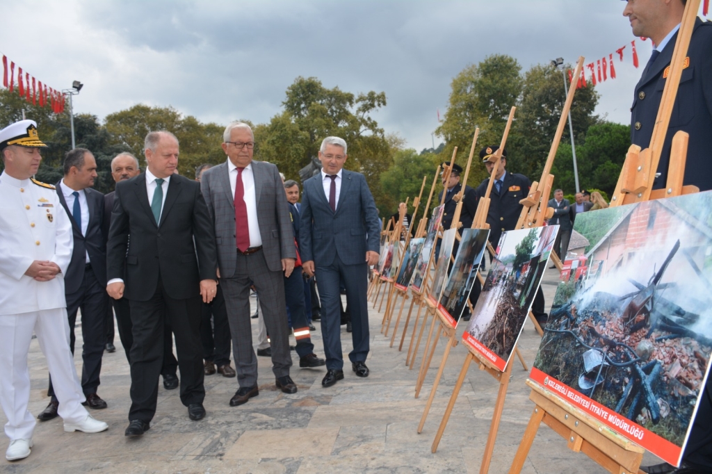 Törenin ardından, İtfaiye müdürlüğünün 2019 yılında gerçekleştirdiği çalışmaların fotoğraflarından oluşan serginin açılışı gerçekleştirildi. Protokol sergi ve beraberinde açılan Arama Kurtarma Teçhizatları, Yangın Söndürme Araçları ve Sualtı Kurtarma araçları ile ERİDAK standlarını gezerek bilgi aldı.