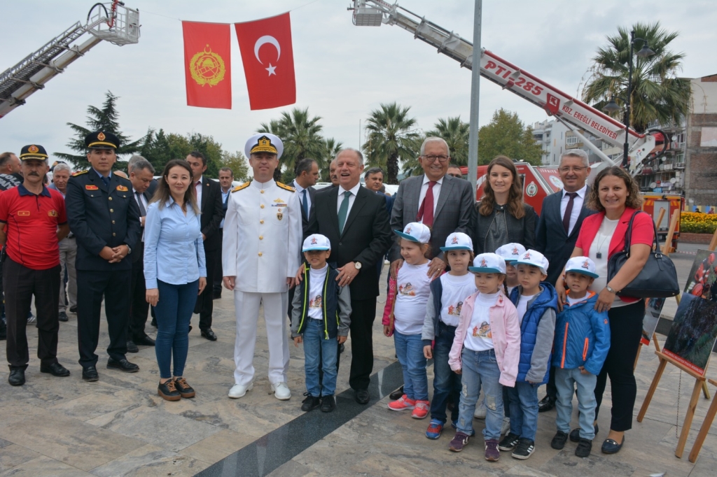 Törene, Ereğli Belediyesi İtfaiye Teşkilatı, Erdemir İtfaiye Birimi, Orman İşletme Yangın Söndürme ekiplerinin yanı sıra, daire müdürleri, sivil toplum kuruluşu temsilcileri ile öğretmen ve öğrenciler katıldı. Belediye başkanı Halil Posbıyık, törene katılan ana sınıfı öğrencileriyle hatıra fotoğrafı çektirdi.