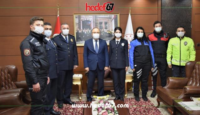 Vali Tutulmaz ziyarette ‘’kurulduğu günden bu güne aziz milletimizin huzur ve güvenliği için görevlerini üstün vazife anlayışıyla gayret ve özveriyle yerine getiren polis teşkilatımızın kuruluşunun 176. Yılını ve polis haftasını kutluyor, görevlerinde kolaylıklar ve başarılar diliyorum’’ dedi.