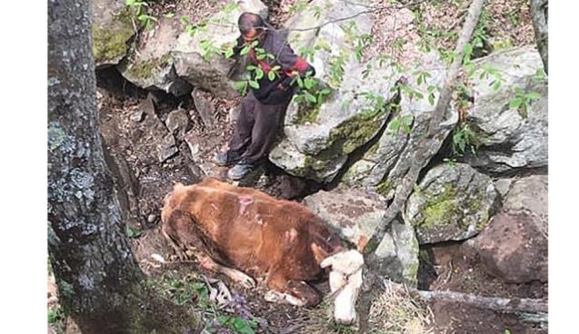 İnek uçurumdan yuvarlandı...