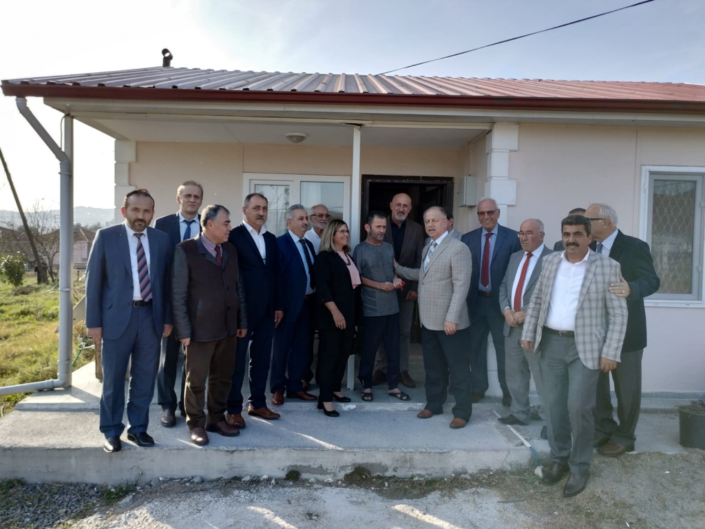 Kaymakamlıktan yapılan yazılı açıklamalara göre, Kaymakam Çorumluoğlu, Süleymanbeyler (Subaşı) köyünde Kaymakamlık Sosyal Yardımlaşma ve Dayanışma Vakfı (SYDV) tarafından yaptırılan prefabrik evin anahtarı, ihtiyaç sahibi İsmail Yaman’a Kaymakam Çorumluoğlu tarafından teslim edildi.