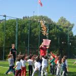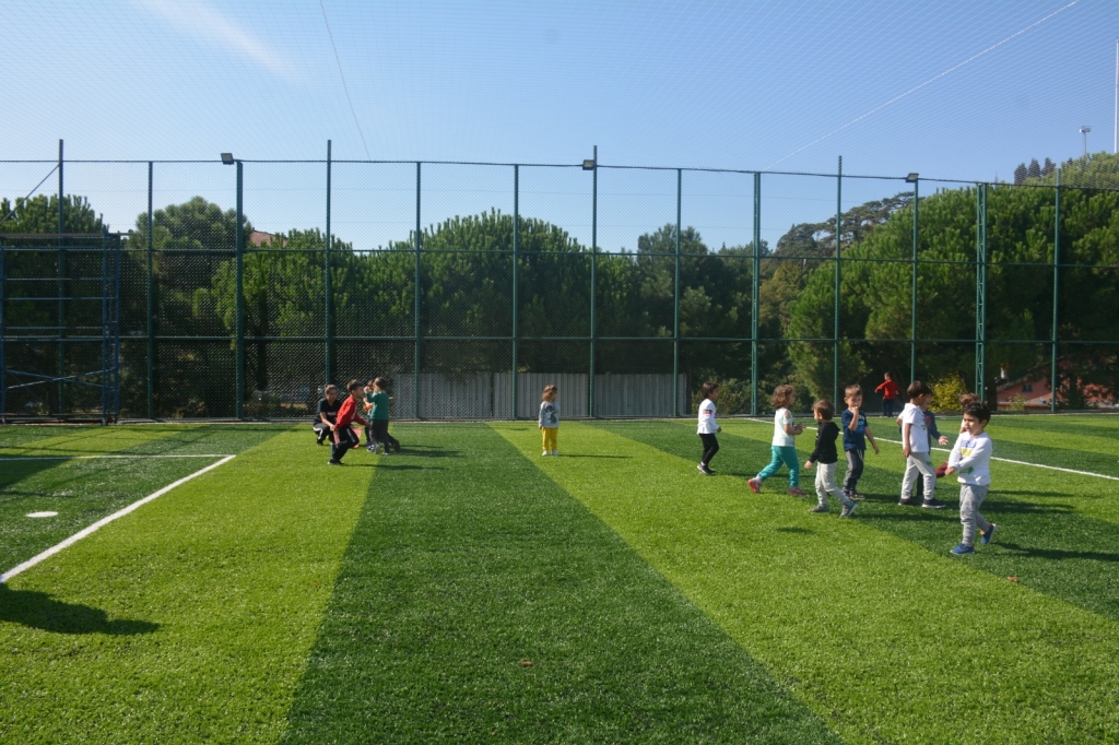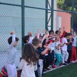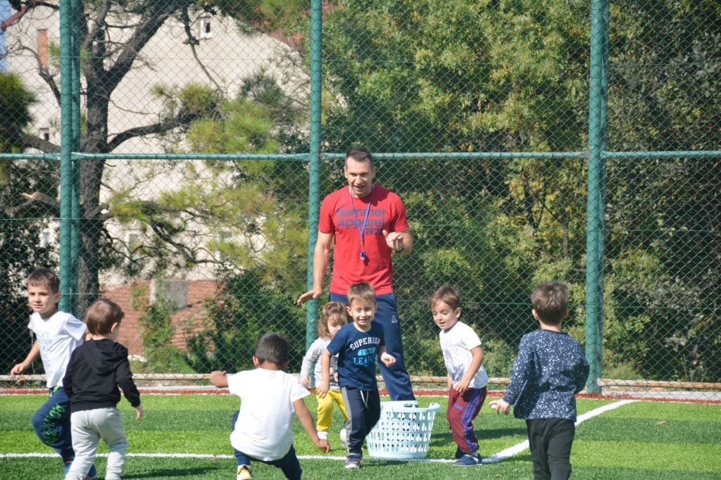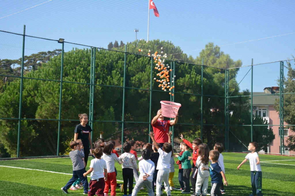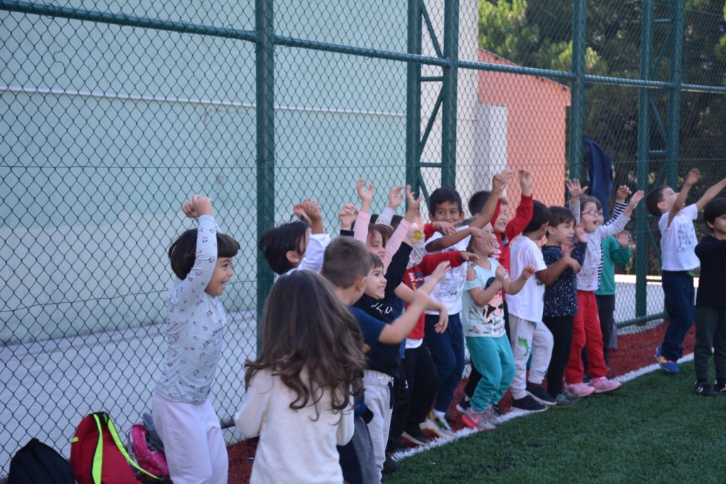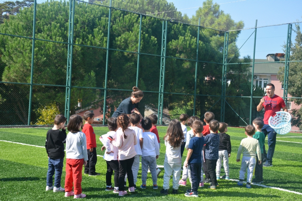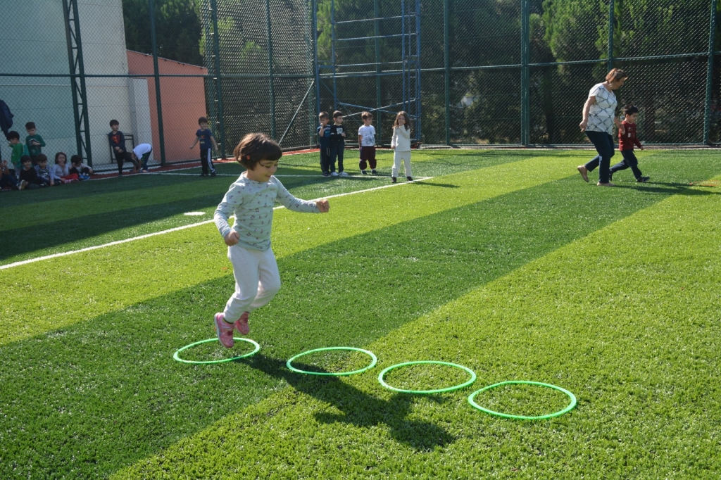 Çocuklar, beden eğitimi ve spor etkinliklerinde neşeli zaman geçiriyor ve oynarken öğreniyor.