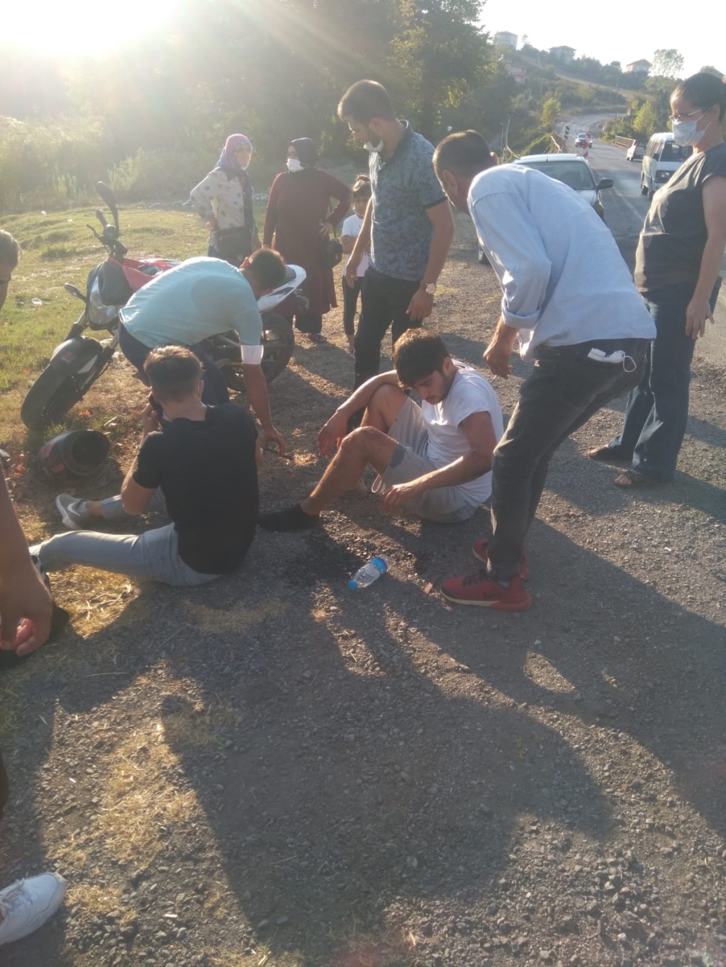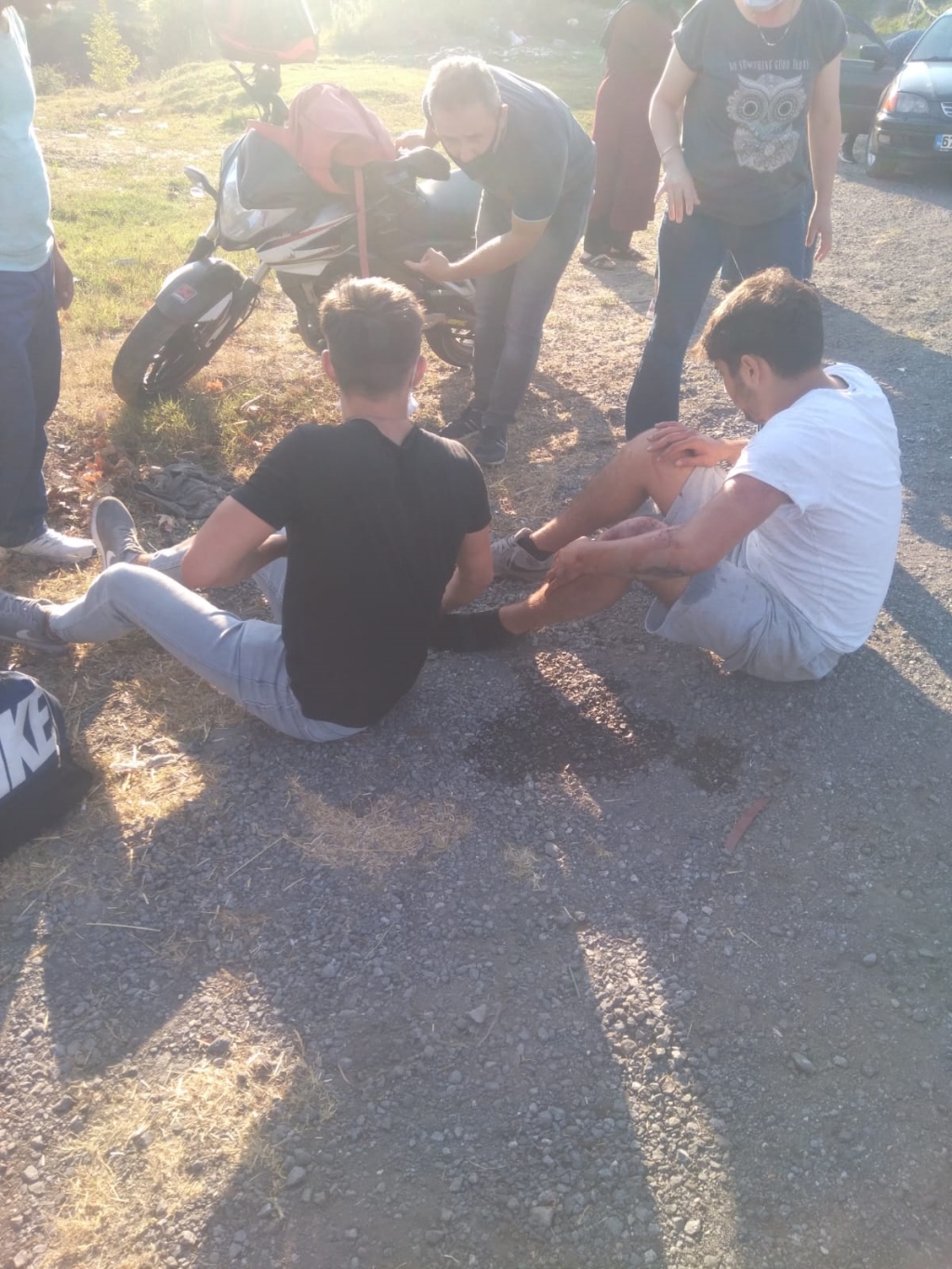 Zonguldak’ın Ereğli ilçesinde yolun ortasında ki köpeğe çarpmamak için manevra yapan motosiklet sürücüsü hâkimiyetini kaybettiği motosiklet ile devrildi. Kazada 2 kişi yaralandı.