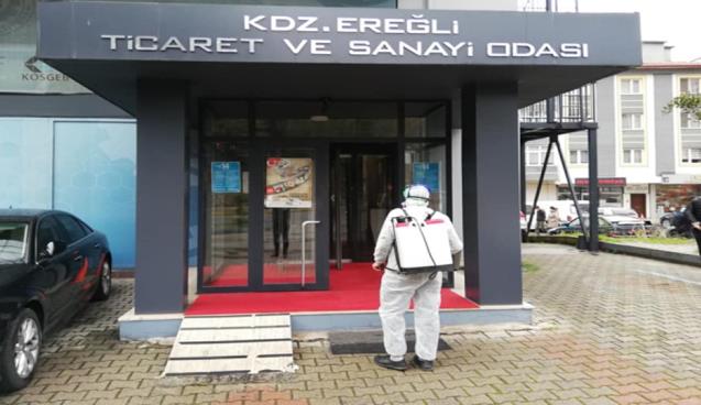 Yeni tip koronavirüs önlemleri kapsamında viral enfeksiyon ve salgın hastalıklara karşı Kdz. Ereğli Ticaret ve Sanayi Odasının hizmet binasında, mesai bitiminde ilaçlama yapıldı.