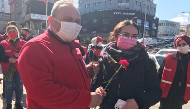Türk Kızılayı Zonguldak Şubesi Genç Kızılay Gönülleri tarafından ‘8 Mart Dünya Emekçi Kadınlar Günü’ dolayısıyla Gazipaşa Caddesi’nde kadınlara karanfil dağıtıldı.