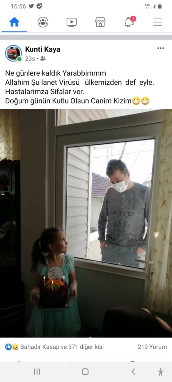 Zonguldak’ın Alaplı İlçesinde itfaiye eri olarak görev yapan Kunti Kaya geçtiğimiz günlerde Koronavirüse yakalanmıştı. Evinde karantinada olan Kunti Kaya kızının doğum gününü camın arkasından kutlayabildi.