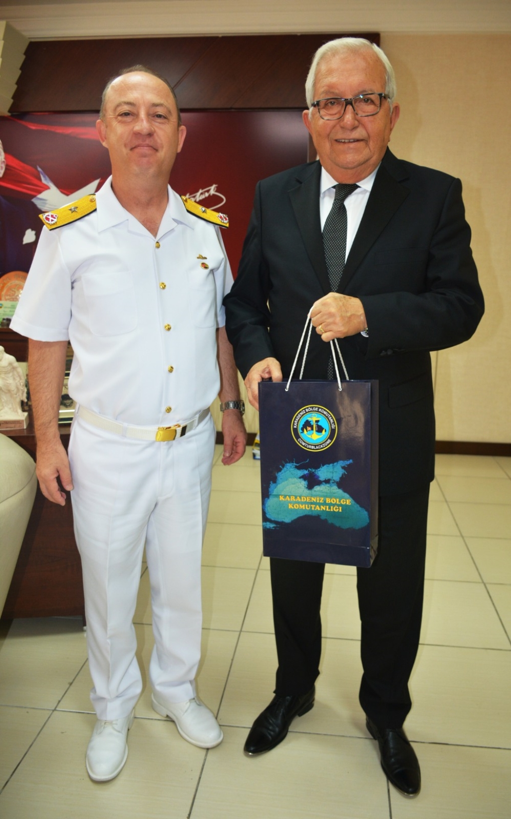 Karadeniz Bölge Komutanı Tuğamiral Hüseyin Sami Uyar, Belediye Başkanı Halil Posbıyık’a iade-i ziyarette bulundu.