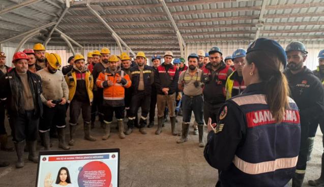 Karadeniz Ereğli İlçe Jandarma Komutanlığı tarafından madenciler kadına şiddete karşı bilgilendirildi.