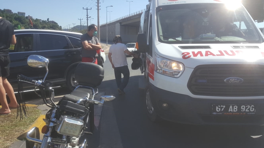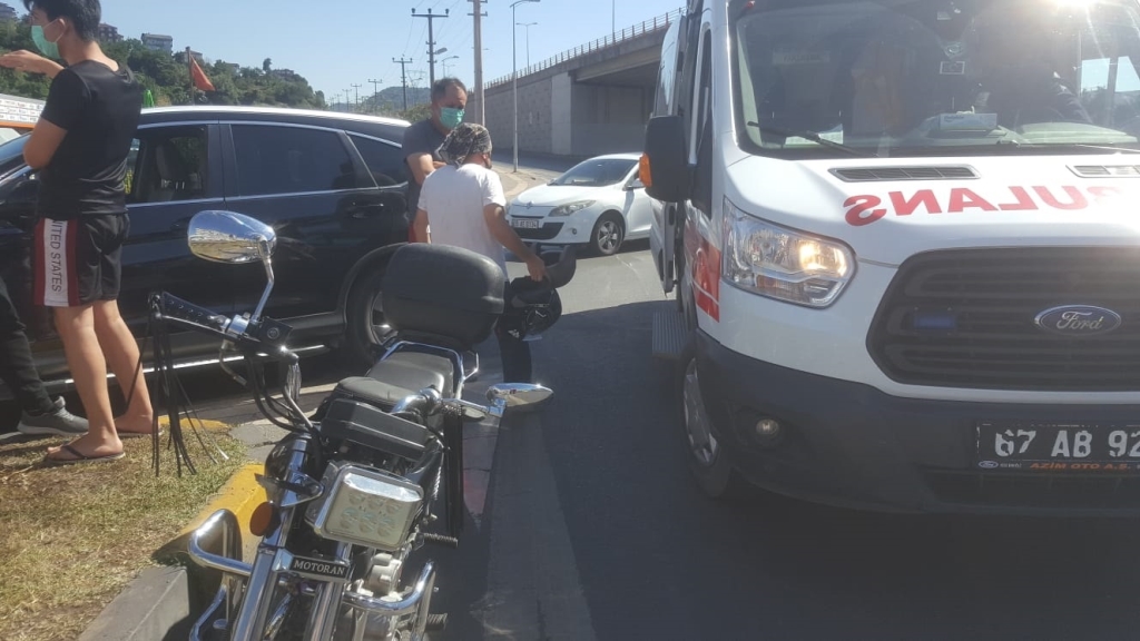 Kaza akşam saatlerinde Devrek yol ayrımı kavşağında meydana geldi. Alınan bilgilere göre Devrek Yol Ayrımı kavşağından Kepez istikametine dönüş yapan Selim K. İdaresindeki 67 TJ 919 plakalı Cip ile 67 AAF Elmatepe mahallesinden Devrek Yol Ayrımı istikametine giden Atanur Ö. (52) İdaresinde ki 67 AAF 995 plakalı motosiklet çarpıştı. Kazada motosiklet sürücüsü Atanur Ö . ile motosikletteki eşi Hanife Ö. Yaralandı. Yaralılar olay yerine gelen sağlık ekiplerinin ilk müdahalesinin ardından devlet hastanesine kaldırıldı. Yaralıların sağlık durumlarının iyi olduğu öğrenildi. Diğer sürücü Selim K. İse ifadesi alınmak üzere polis merkezine götürüldü. Kaza ile ilgili soruşturma başlatıldı.